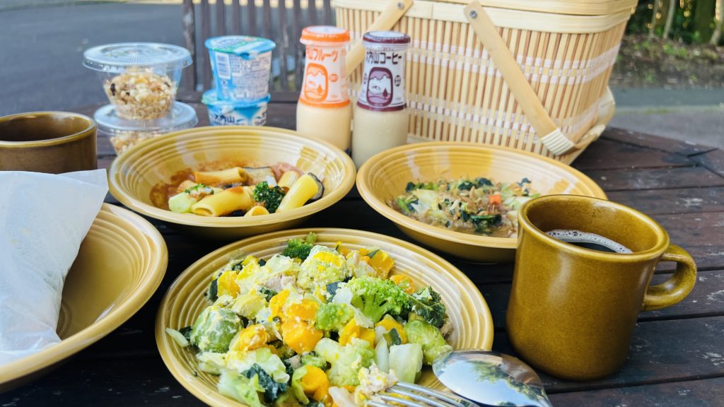 自分で温めて食べるスタイルですが、その分、自分たちのペースで過ごせるのが嬉しいポイント。朝の時間もゆっくりと楽しめました。
