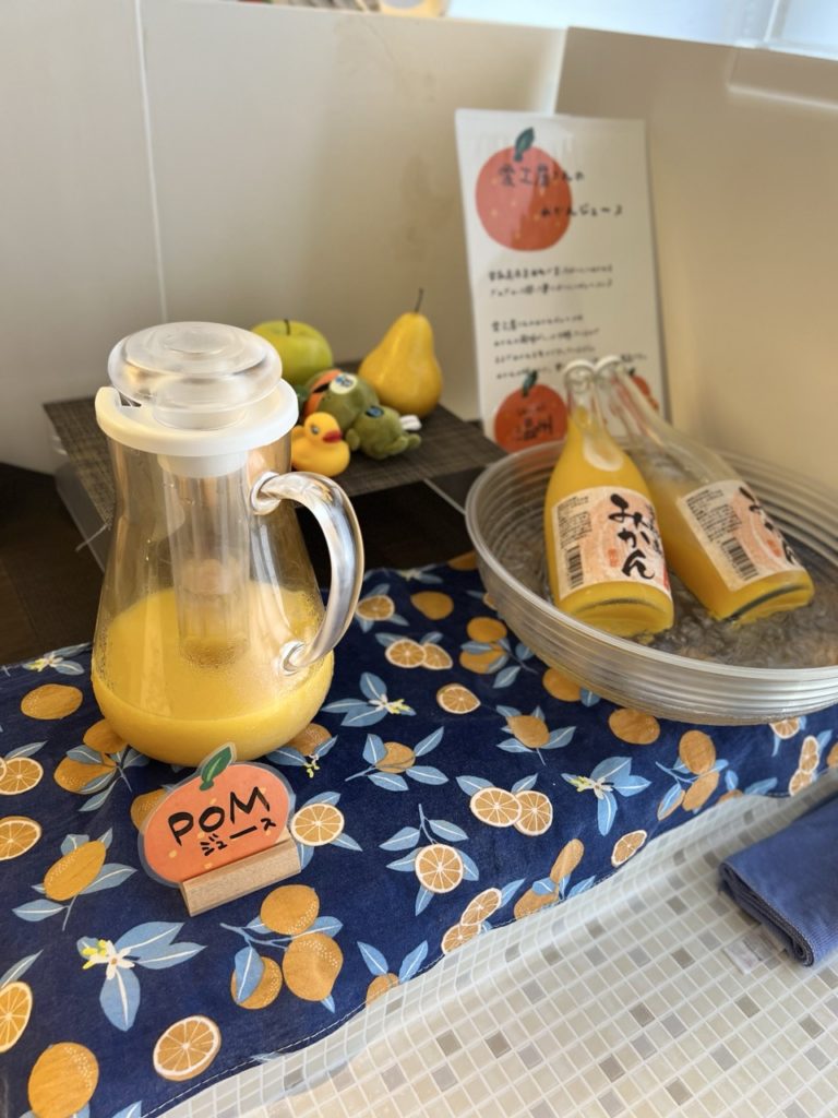これも体験したかった!みかんジュースの蛇口をひねれば、みかんジュースが出てきます。