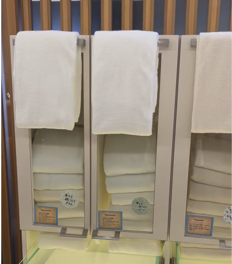 入口には今治タオルを選ぶことができる、「タオルバー」があります。